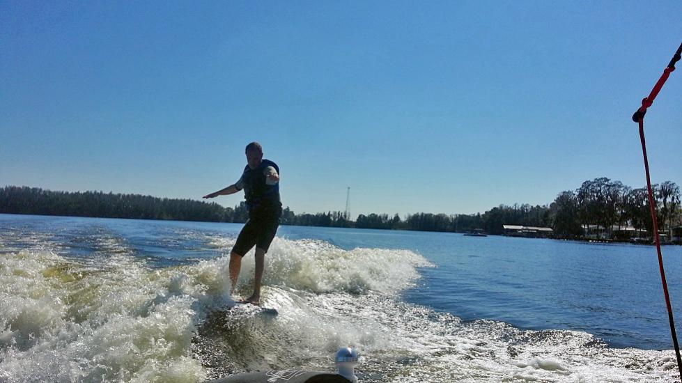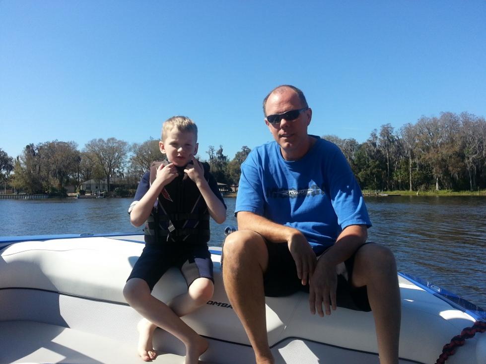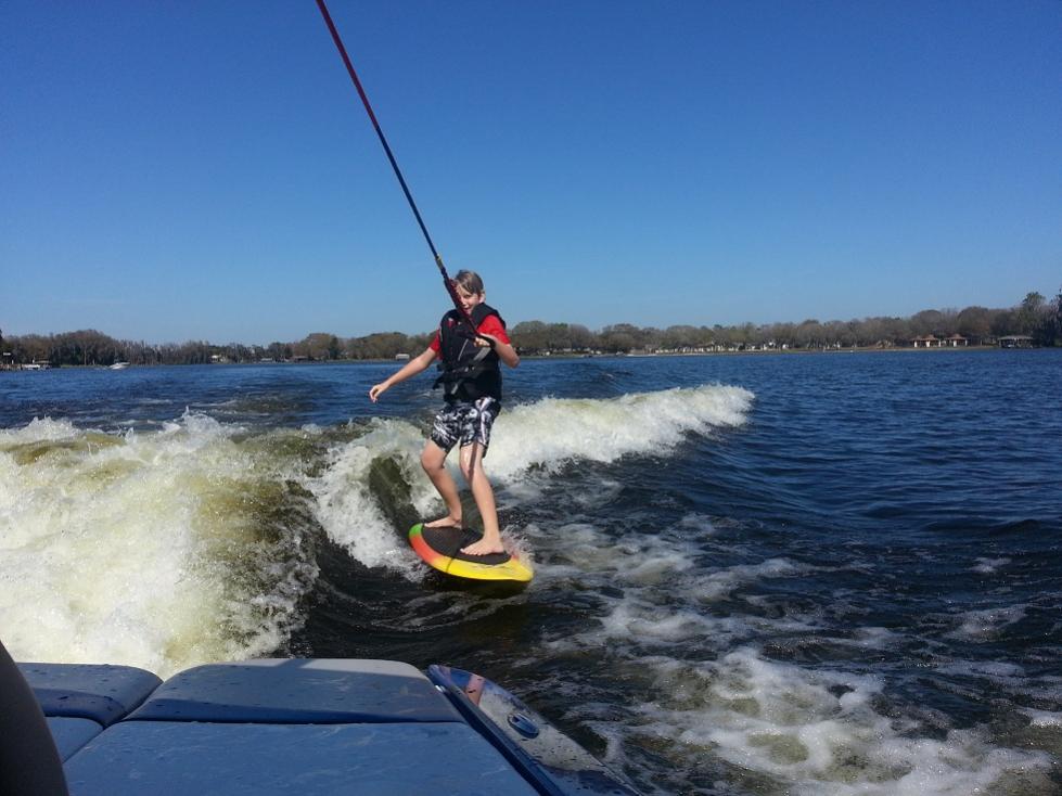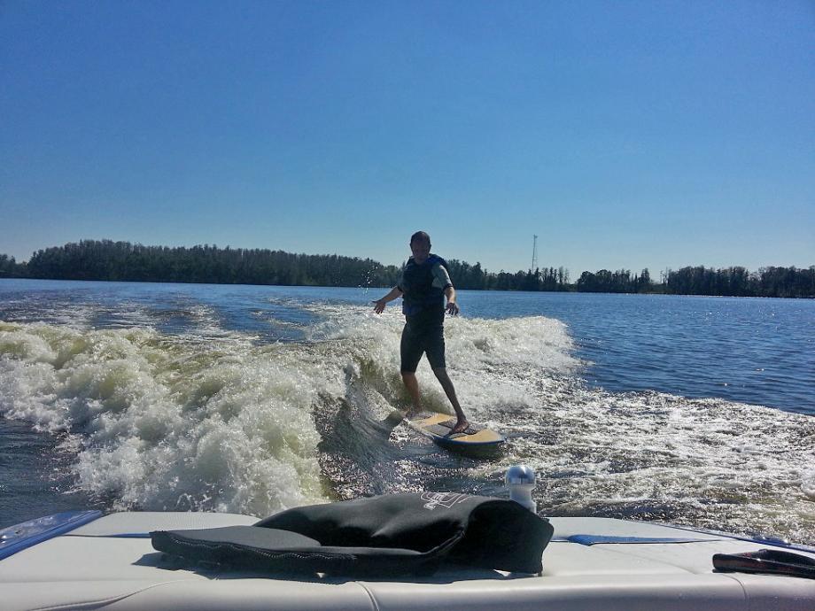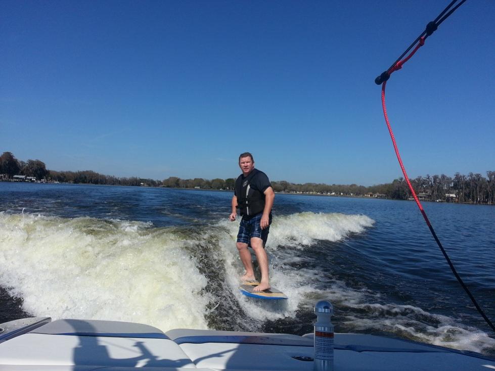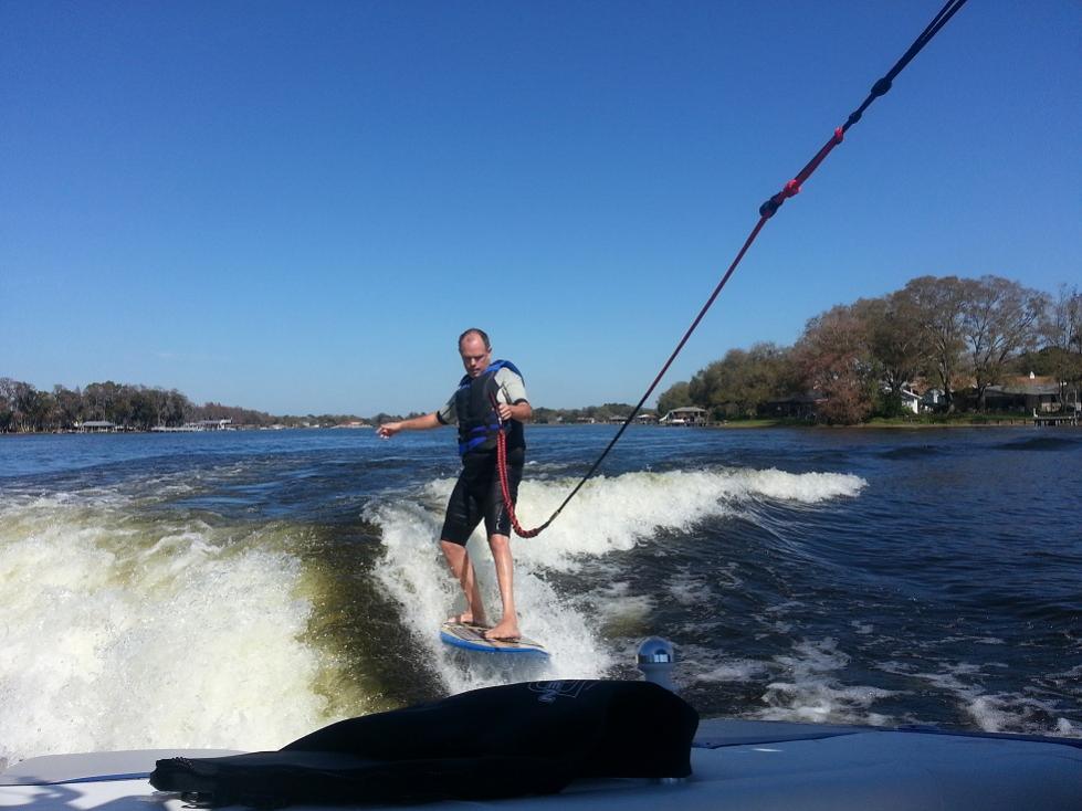 We had a blast with Stacy over the past weekend. I really enjoyed the new LSV. The blue is deeper than the old color and it just pops out at you. The tower is really nice and he's got the Monster racks dialed in so they work flawlessly. I helped him replace his in boat speakers with some new Exile gear so we had some nice tunes too. We got out Sat. afternoon. It never quite warmed up. I'd guess the water was around 68 or so and the air around 75. Comfy in the sun but the water felt kinda cool. Me and the two older boys skipped the wetsuits and just trunked it. I've always said I'm good down to about 62 but I think FL is getting to me b/c when I jumped in I cried, "Mommy, Mommy" and had the boys cracking up.