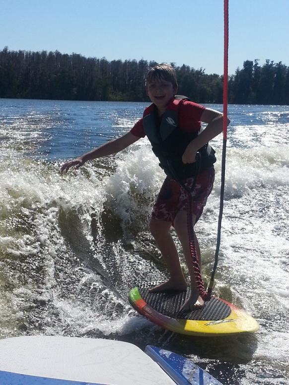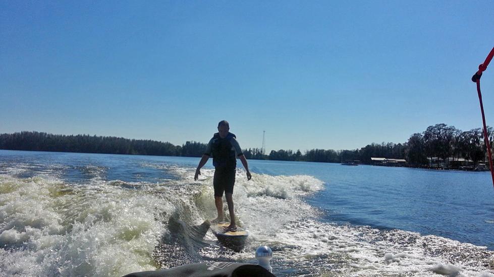 Anyway, he's got her throwing a nice wake already and I loved the new TripleX board we tried out. It's got a dual fin setup and you could carve with it pretty nicely. Both my boys got a little slack and I thought the wave had nice push to it. The pocket was way longer than I get on my LSV. I am going to have to get some more weight up front b/c I really like his wave. Here's some pics of a great day. Thanks again, Stacy!