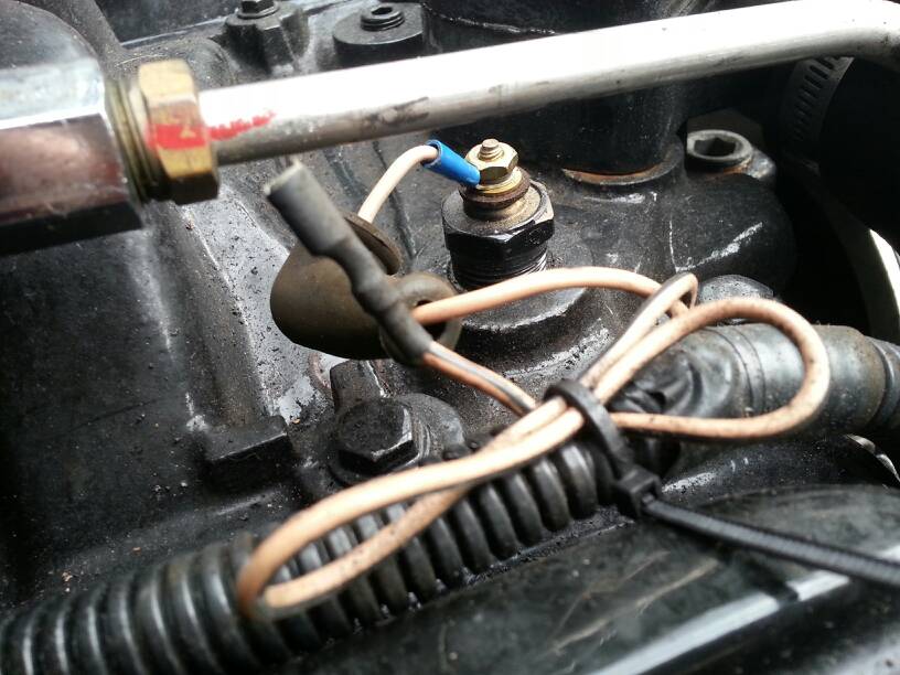 Blue wire attached to oil sender. Tan with blue is tied off but has a connector like it used to be on the sender. Ideas?