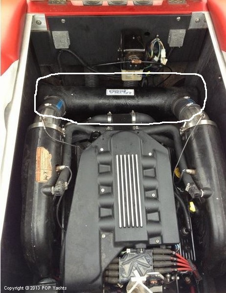 Is the section outlined in the picture the muffler? And can it be removed and flow straight out the rear of the boat with out any problems? like heat? The motor on this 2008 mobius xlv is to quiet!!!