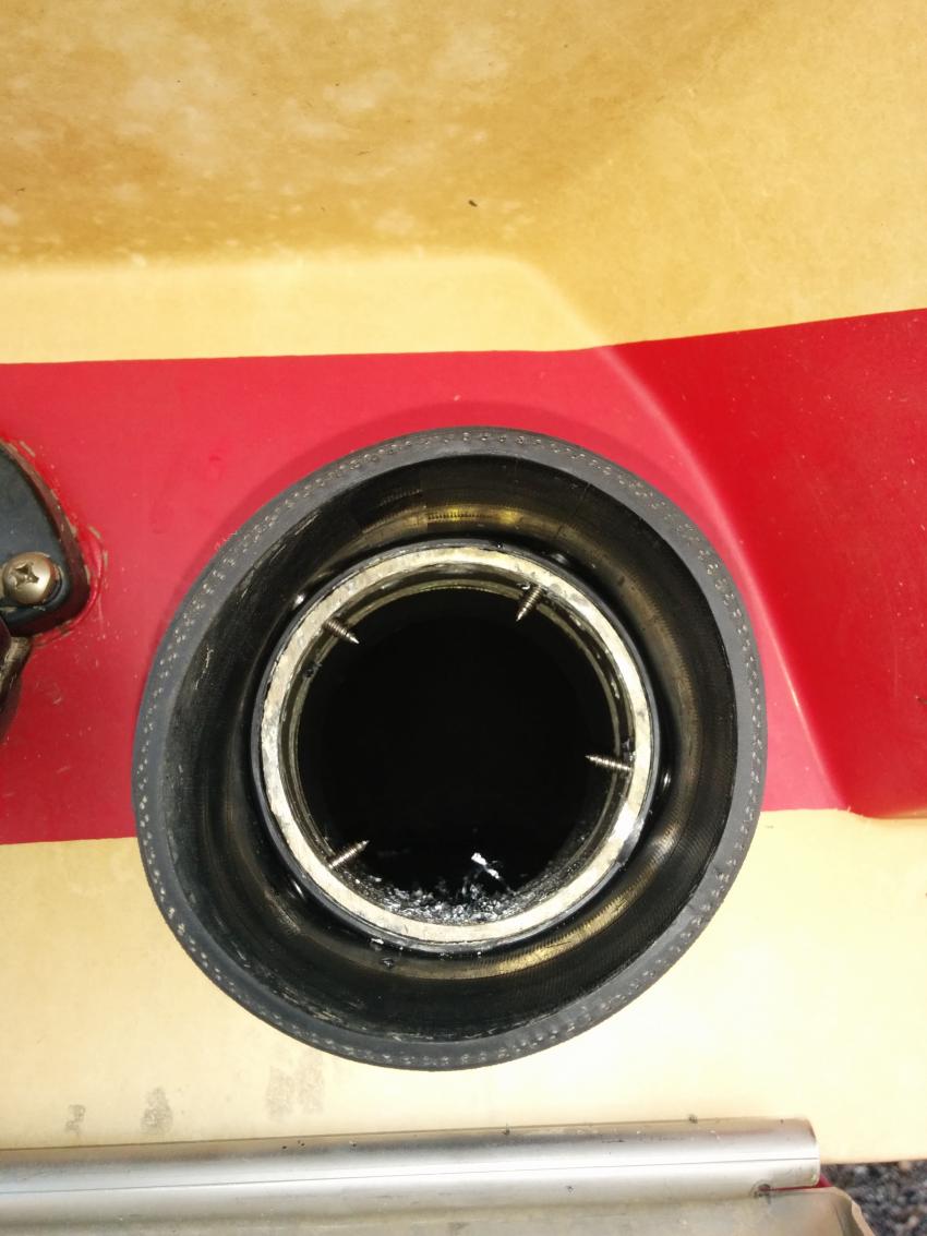 Then using an over sized drill bit. I drilled from the inside of the exhaust tube out, near the edge. Drilling threw the metal insert and outer plastic. I didn't want to mess with trying to tighten the screws, just placed them in the holes and slipped the FAE hose over and tightened the hose clamps..