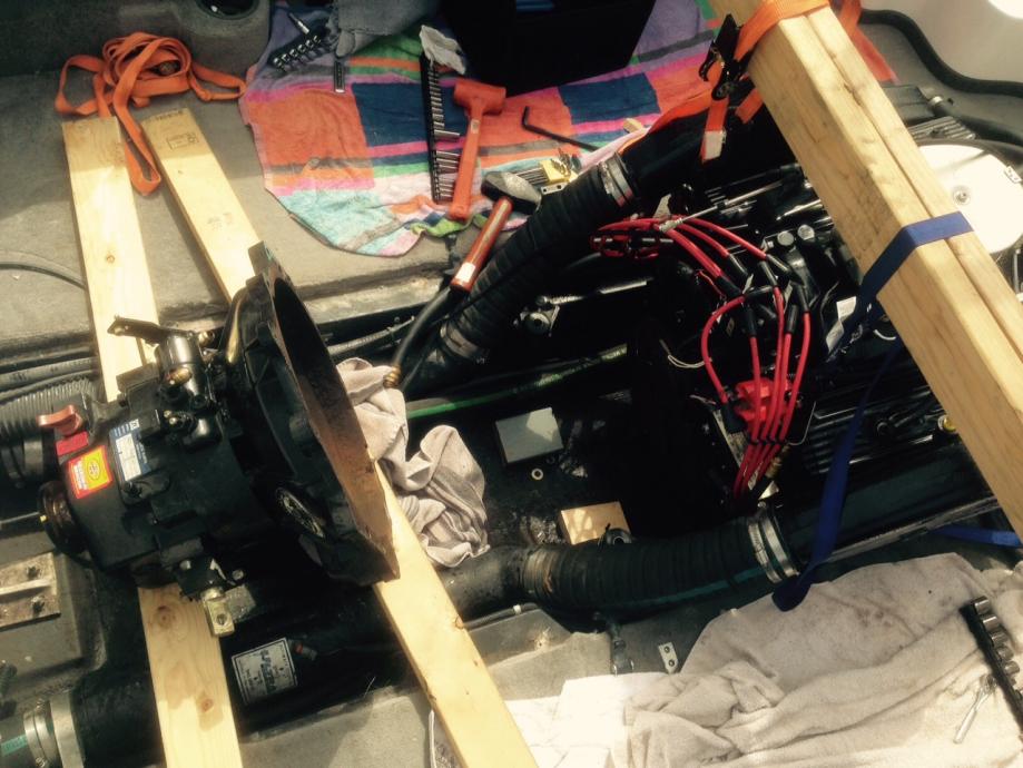 Step 13. The easy stuff, reinstall the shift linkage, cooler lines and transmission wiring. Leave the floor and seat out or loose until you check the alignment in the water. Add transmission fluid back to the full mark.