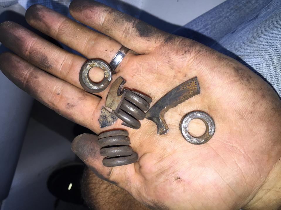 A pile of broken flex plate springs. So yes there is the smoking gun, I was lucky as there are some other posts out there where the broken springs had shot through the bell housing. My boat was still driving perfectly fine other than the ticking noise but probably wasn't far away from all of the springs failing.