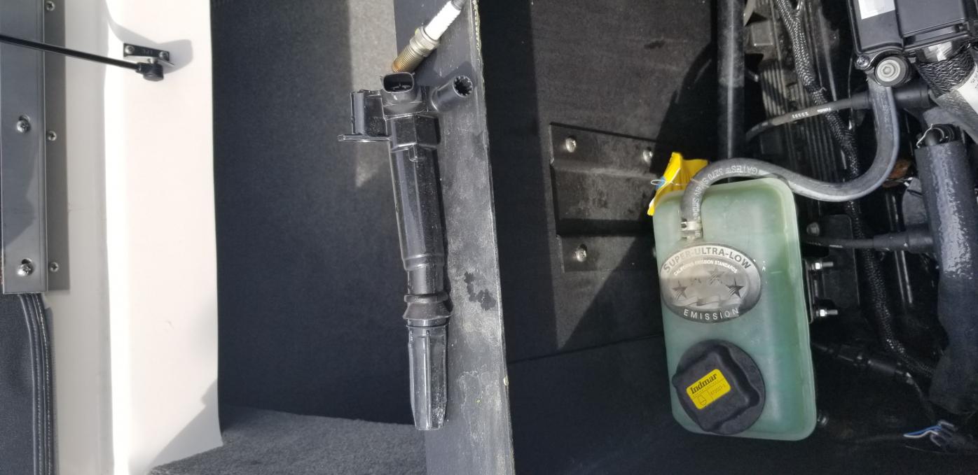 2. This spark plug is partially blocked by the fuel line, disconnect the connector and lower plug wire by pulling on the cap.