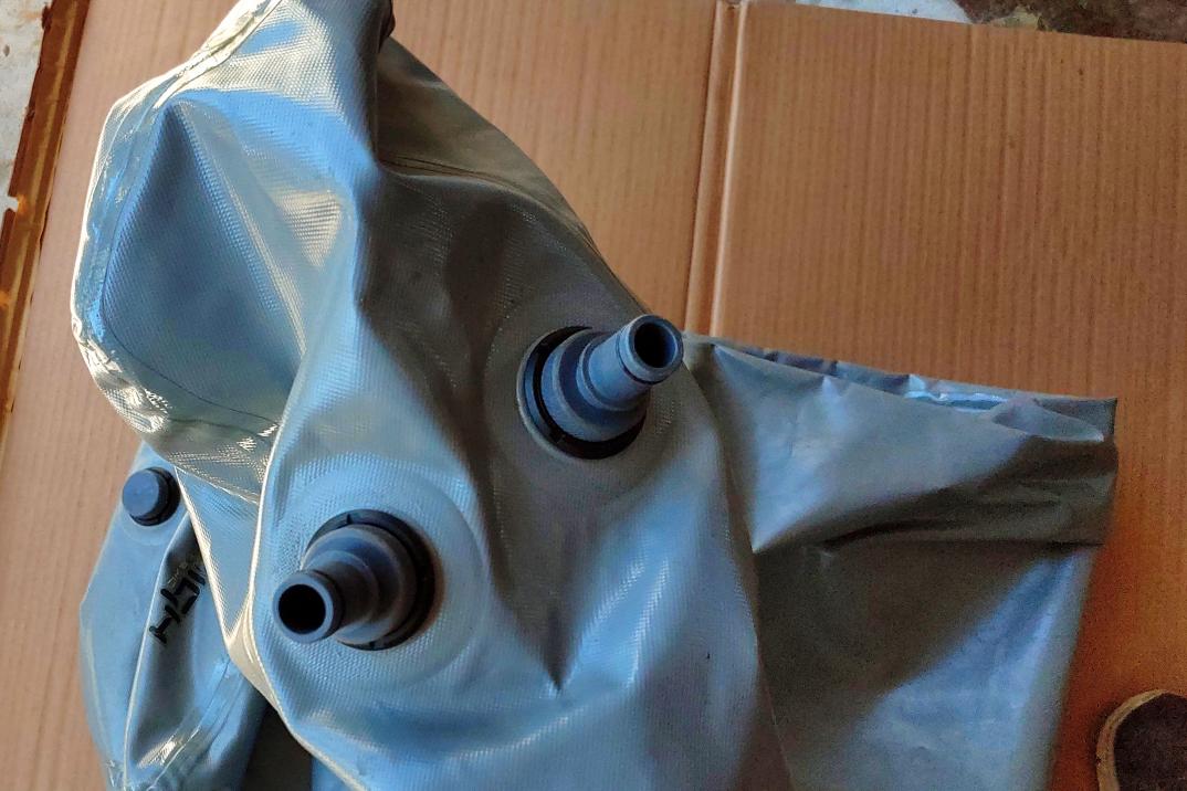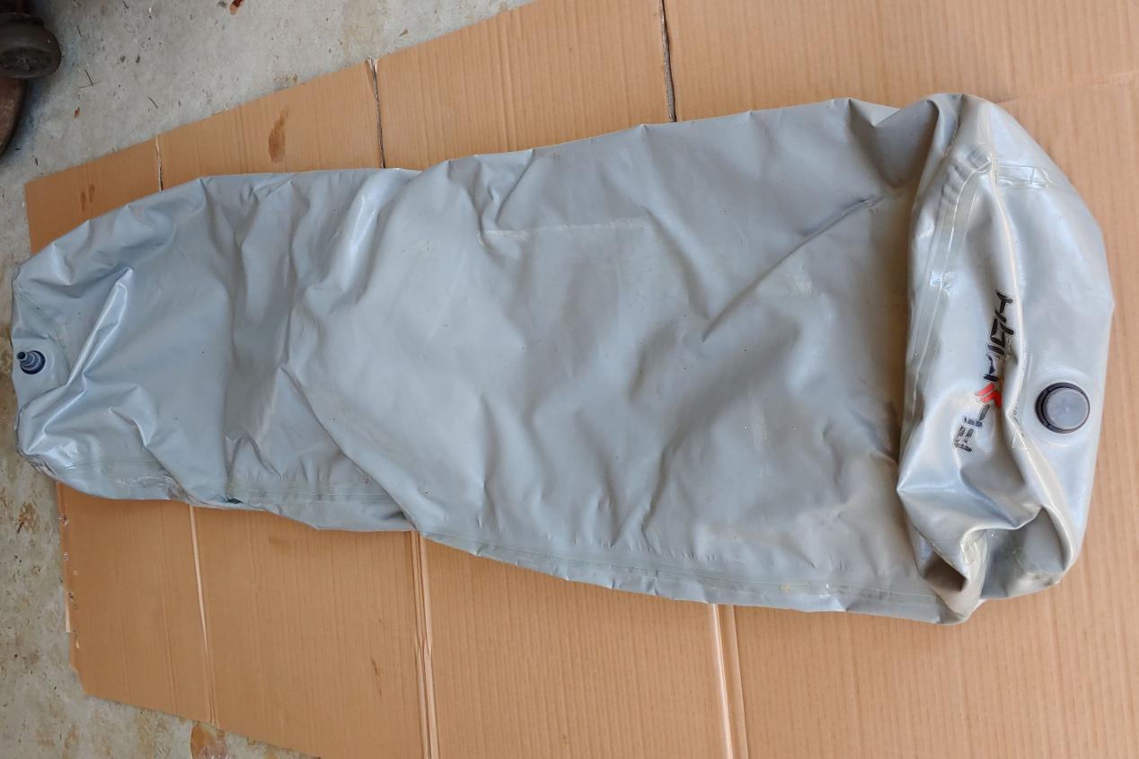 This is the long thin one that came stock on the LSV. It is about 6 feet long and around 20" across when flat. These were used in the rear lockers as well as in the ski locker on the 2007-09 LSV and also on some other models. It has a single fitting with plug at one end and two fill/drain fittings on the other end. May be dusty from storage but works great.