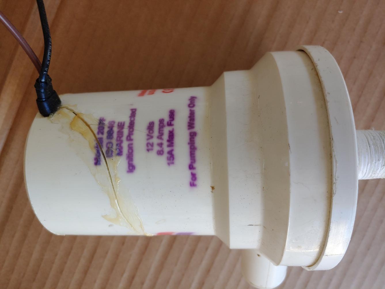 I have 3 of these available. Two in another listing and pump 3 here. They are all the same pump. These are Rule 2000 livewell pumps that were used as original equipment in the aerator ballast systems. I believe they are rated at 1200 GPH. They have been in a box for a couple years since I changed my ballast system over. The box fell a while back and two of the pumps suffered cracked housings. They were repaired and you can see the results in the photos. The pumps work; all were tested today. The cracks were not to the part of the pump that moves the water but to the plastic part that houses the motor. So, while I would be confident using them in the boat I would not use them as submerged "throw over the side" pumps unless you want to use a sealer around the housing first. The prices reflect working condition but with the above stipulations.