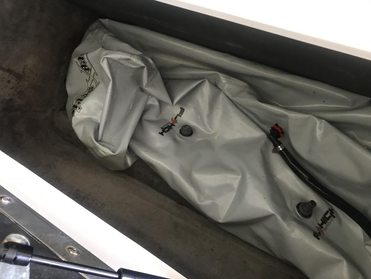 I'm not sure if the bags/pumps have been upgraded. It did have two bags T'd from the front bag that took up all the front storage. I did not like that they raised the cushions up of the boat when filled, so I took them out.