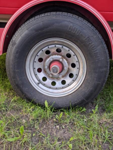 Question I have is I currently have the standard silver rims that came on all those trailers back then with a bearing hub...Can I replace these with rims that don't have the hub? I have attached pics of the stock rims & a couple that I've seen that would fit my style...one of them has a cap, the other doesn't appear to come with one. I'm assuming the one that doesn't, the red piece on my stock rims would stick through & look dumb or am I missing something? Can you buy just a cap to cover that or is that something that will come with the rim & I just missed it in the pictures?