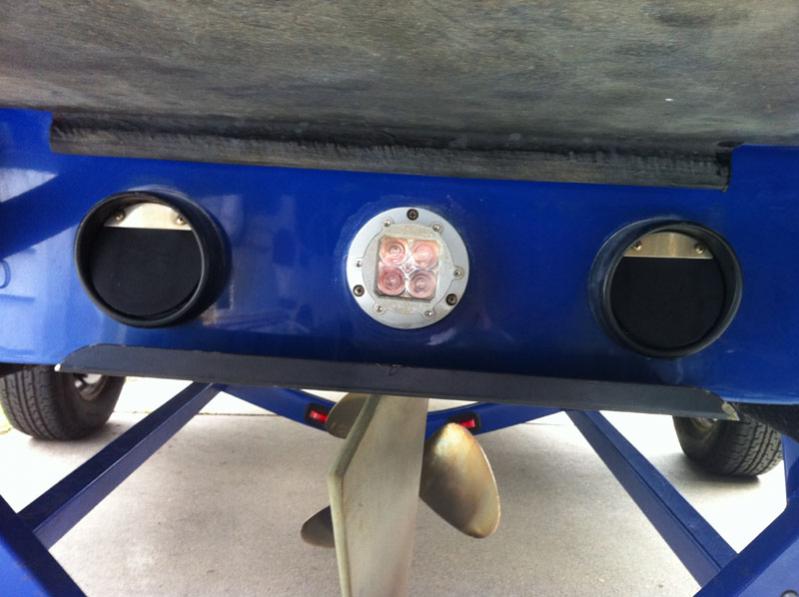Yes, I know, the light on the left is off-center - the drill bit for the wire wandered when I was drilling, resulting in what you see here. I'm not too worried about it, since its under water 99% of the time;