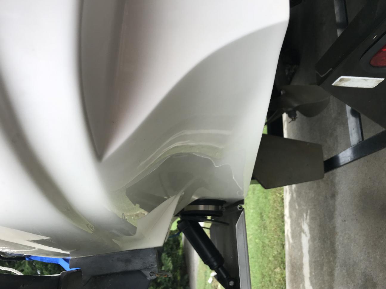 That transom looks like it would be difficult for many reasons. There's a ton of lateral curve where you'd put the hinges. You'd need to make a spacer/adapter so the hinge sits flat. You could likely make the actuators work, mine sit about 1-1/4" above the hinge. The curve just means you'd probably have to make the tabs a bit longer than the 14" of my silver tabs.