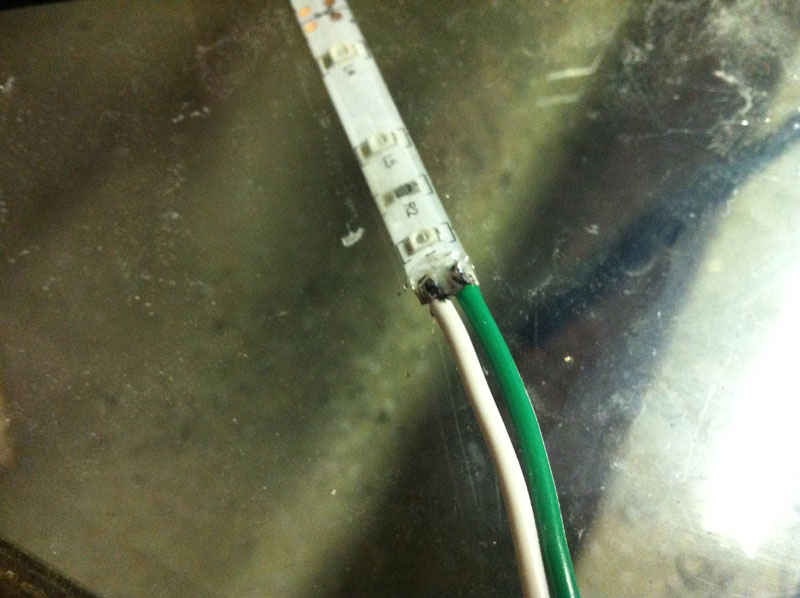 Once I had the rings figured out I needed to shorten the LED strips - easy enough, I just had to cut them to length and solder wires onto the ends;