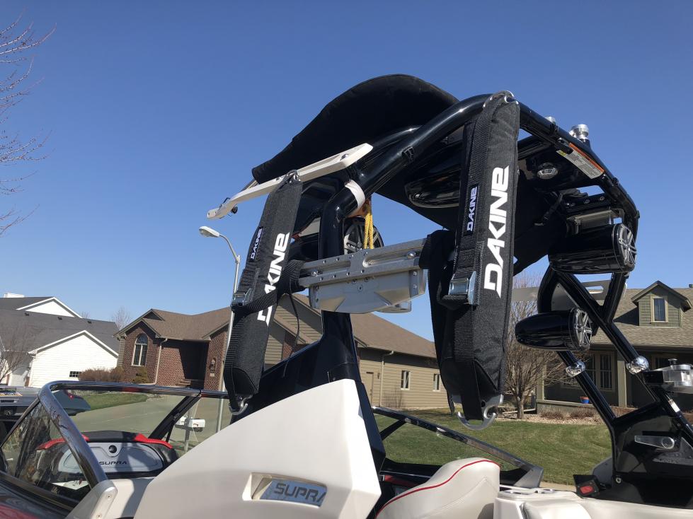 Some cool stuff: Corson Piper's surf rack mounted on my original swivels with fingers removed--to keep fancy boards safe. Going to do the same thing on the other side too. Added benefit is that I cannot scrape these off coming into the hoist if I am a little forgetful that day....