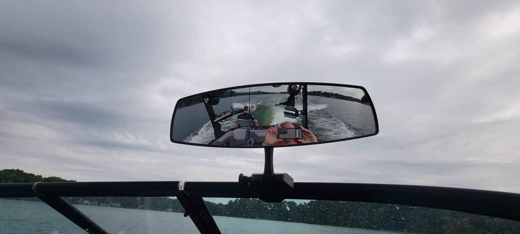 The mighty mondo surfs! Zack came out and got me dialed in with a combination of speedo calibration and surf tab setting adjustment. Unfortunately we also hit a big ol branch and dinged my prop so I pulled the boat back out and they are swapping back to my stock prop for now. Rode amazing on the stbd side, I tried to ride the port side but had trouble because Im just not used to that. And it works this good without even installing my new bags! Cant wait to see what an extra 5-600 lbs will do for it!