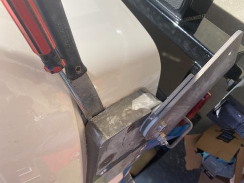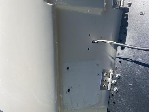 So being the dummy that I am, and being forgetful, I drilled the holes for the actuator feet and tried feeding the wire through. That’s when I realized that the hole I drilled is 4” below the floor in the bag compartment.