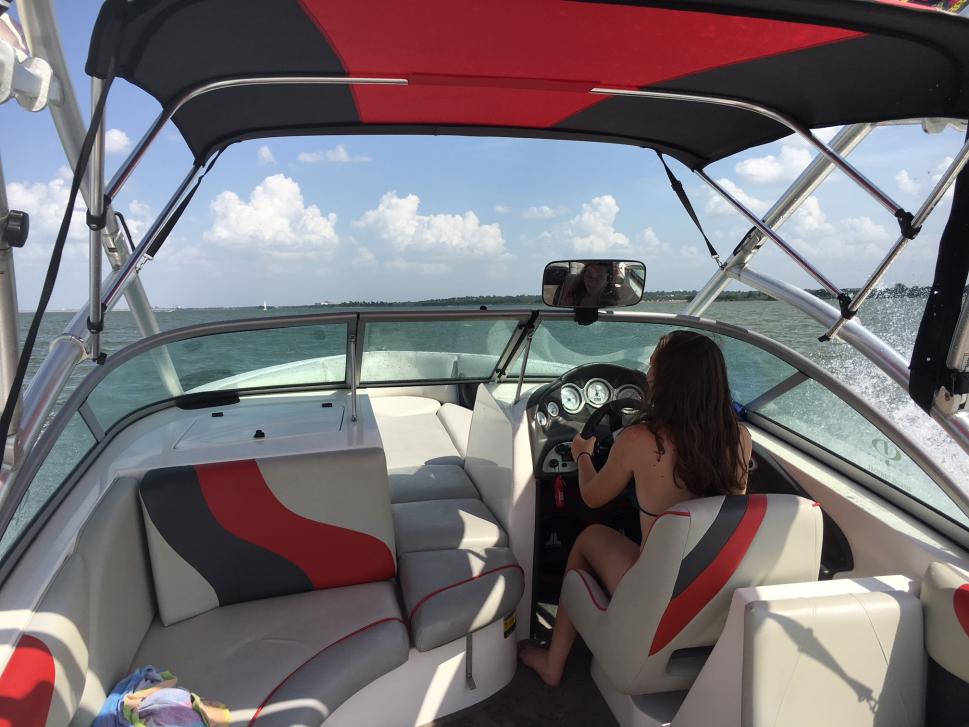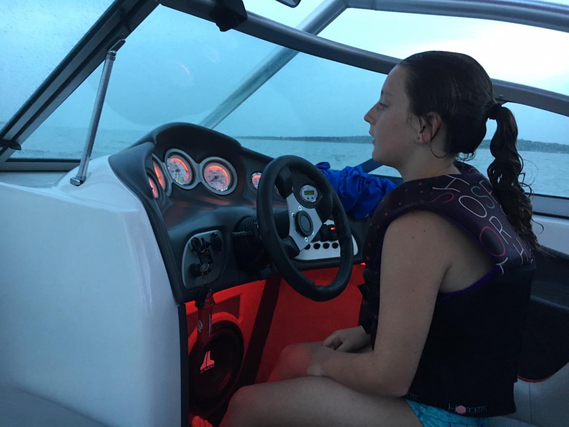 My oldest daughter bringing us back to the ramp, one of my twins wanted to 'drive' while idling to the dock, and rolling in to dinner after a long day. Good time on Grapevine yesterday even with the rough water!
