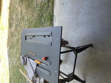 1x1 1/8 angle iron, cut to about 28” pretty close to the bottom channel and to not interfere with the upper locking nut and not scrape on the gel coat