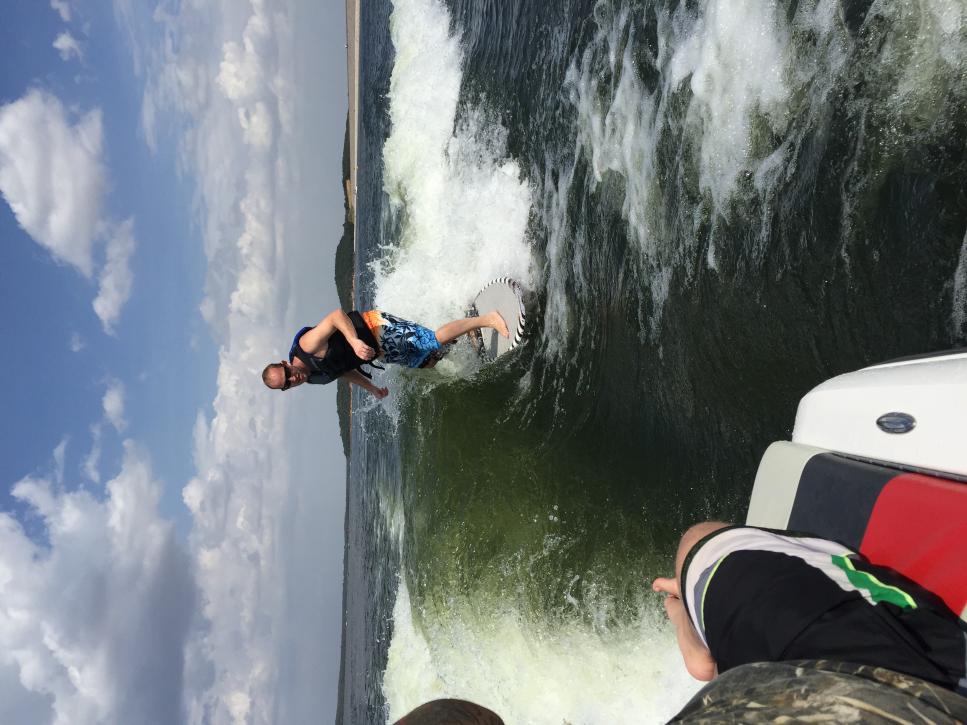 here's a shot of a friend out behind the boat with me driving, we lost almost all the curl at the front of the wave, sever loss of push.. any recommendations?