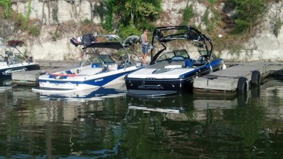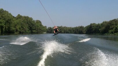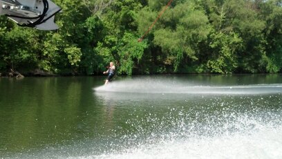 B. Webb working the wakeboard.