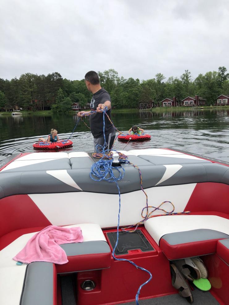 Boarding before any tubing. No boarding, no tubing. Once they want to board more often then I would haul them to the beach on the tubes as to get it out of the way and tube to the launch at the end of the day. Then you have a defined start and end time and the gas you burn was needed anyway to the beach and back.