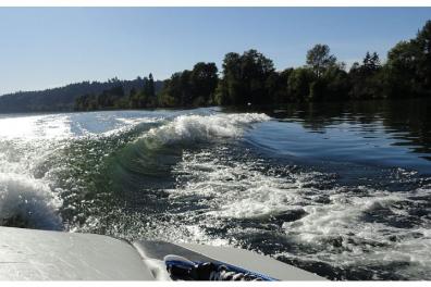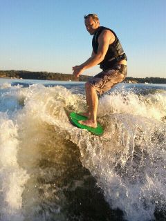 My Buddy surfing a month ago behind my XLV.