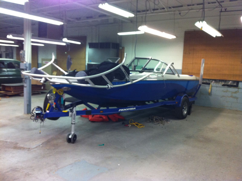 I moved the boat from my dads garage (about 40 minutes from my house) to a buddies heated warehouse about 10 minutes from my house to allow me to get an early start on my stereo rebuild.