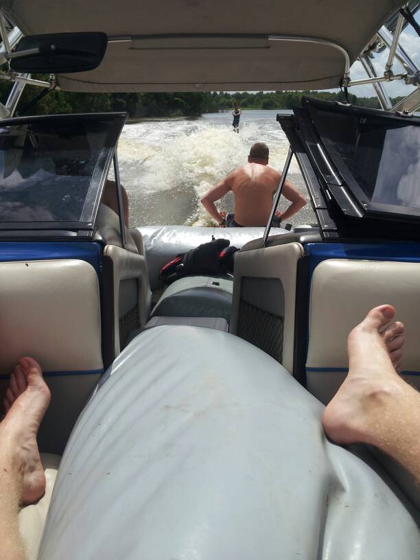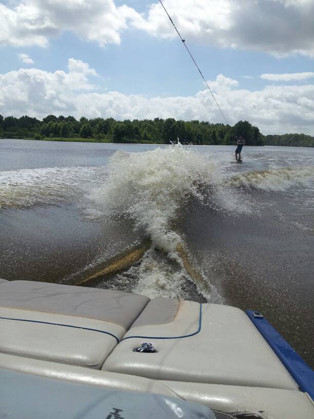 This isnt my boat but my buddys 04 wakesetter. They alllllllll sack their boat out like this. Every single sac YOU CAN SEE is a 750. Theres 600s in each ski locker and ibs under mah butt. You do the math! This picture really doesnt do it justice but the prop wash is seriously 8 feet tall.