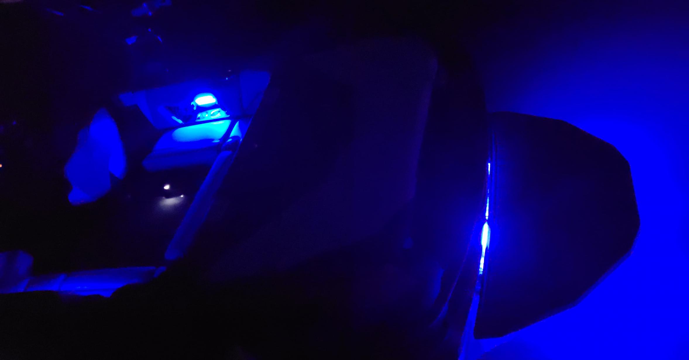 blue i illumination. Turn the UW light switch on and put a volt meter in the leads and see which blue shows 12V, then turn light switch off to confirm.