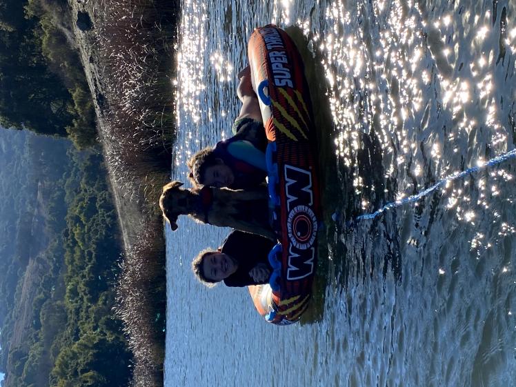 We took our pup out for the first time back in Jan. We went for a low key cruise out to the cove for lunch and to relax. It was a random 90deg day in Jan we had to take the boat out. Right? It would have been boat abuse otherwise. I was a total basket case going into it. Trimmed and filed nails night before, lots of extra towels, visions of shredded seats. It turned out just fine and we actually ended up enjoying having him out there with us.