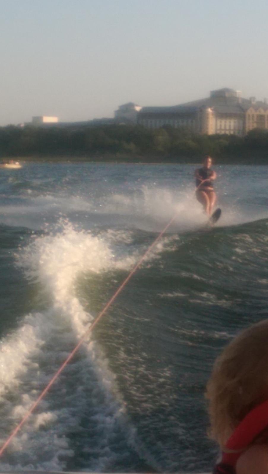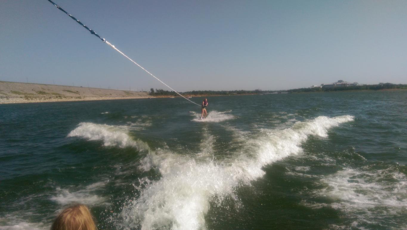 Rare occasion someone wants to wakeboard behind the Mojo. 23mph water is a bit choppy though.