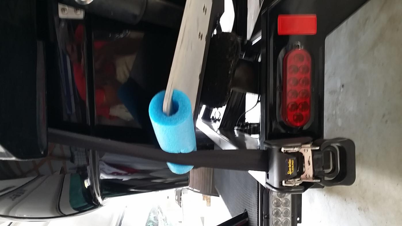 I cut a slit in a pool noodle, attack to the tab to not chaf the strap,and not tighten as much. The only picture I have is this one with the old tab but you get the idea.Attachment 24260
