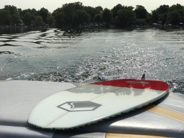 My youngest son and I got some great surfing in on a Friday afternoon up in the North Woods.... with my twin older sons already back to college, our crew has shrunk so yes, that's my 75-year old Dad hanging off the back of the boat having a blast :)