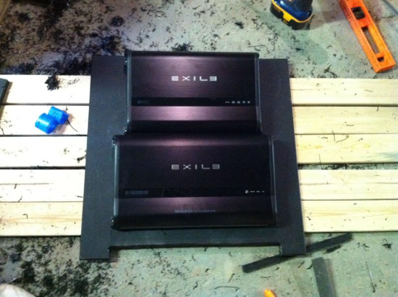 I got the Exile amps in yesterday, wired and mounted the battery switch, connected the relays and switches for LEDs, ran the 8awg +/- for LEDs, and test fitted the Kicker ZX1000.1. I need to trim the Starboard to mount that amp on the backside of the seat, but this picture shows where it will be;