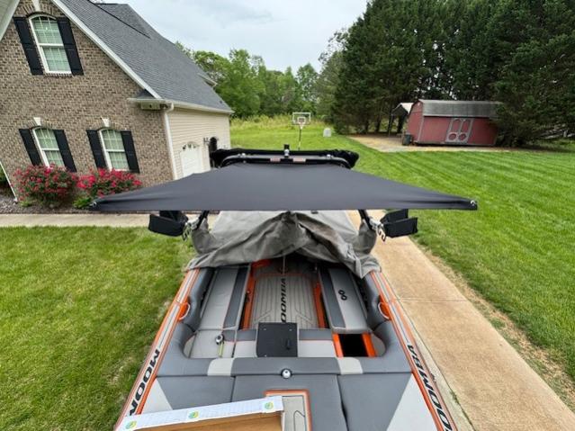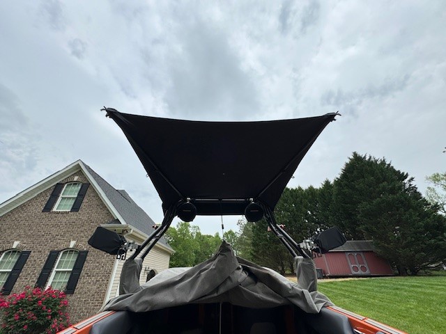 Thanks for sharing, let us know how you like it when you get out on the water. We really like the factory shade, great coverage, but it sure would be nice the eliminate the rear poles.