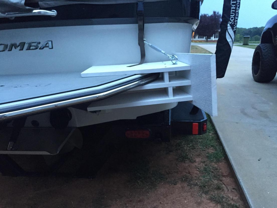 A friend of mine made this ghetto gate for his 12 Mojo. I thought it was pretty clever to make it this way so you can use it for both sides. It might add some structural support as well. We tried it out last weekend and the wave had awesome push but it wasn't very tall. Wake plate was up and the rear 1100s were filled about 90-80 and the center was full. No passengers. I have a few extra sacs to bring along this weekend. How should we weight it with the ghetto gate?