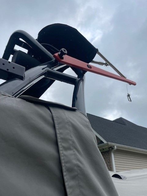 i was going to run the poll mounts on top which would allow room for the rope to mount in the normal spot but i have side pull points that we use 99% of the time. i think it looks a little better under on the rack. if someone wants to wake board then i would take down the shade. itis very ease to put up and only takes about 2-3 min to do. its easier then the stock bimini.