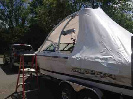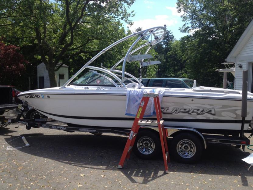 I finally got my boat unwrapped and unwinterized, even installed the dual wheel Fulton trailer jack that I got from a GB here like over a year ago. We'll have roughly 6 weekends on it in the river here in NJ and then the week of July24th we move to SC and will be on Lake Wylie riding.