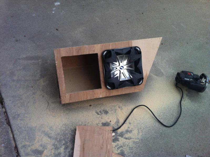 Some more work done on my sub box - I got it rebuilt the correct way, and also cut the holes for the woofers and the port. Next step is a final test fit, to build the port, resin, and rhino-line.