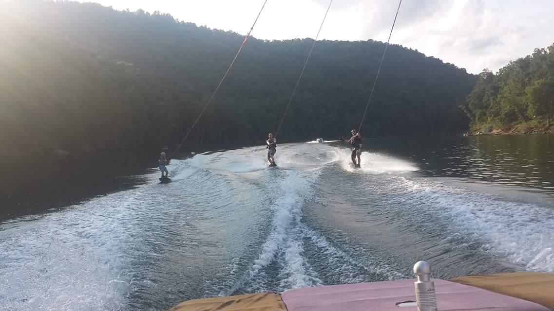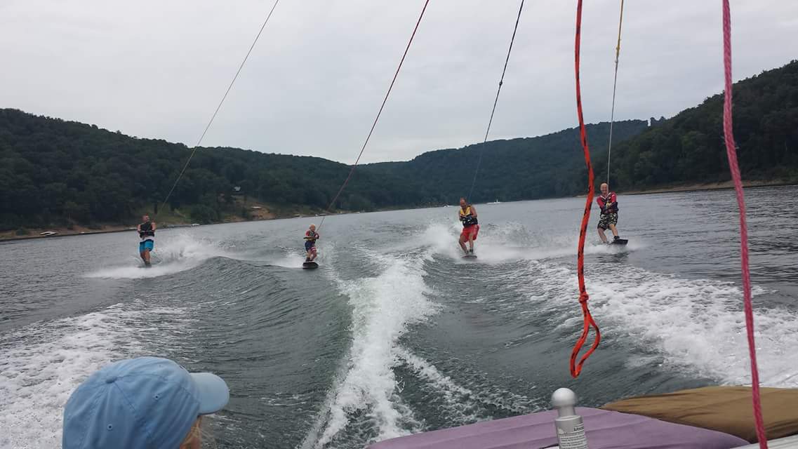 we tried surfing a buddy's dads boat in wisconsin a few years ago. its a 45ft twin diesel engine yacht with twin tabs and found that the second curl back offered the best potential to surf but it took 2 wakeboard ropes tied together to get back there. hard to get up and took quite a few minutes for that barge to turn around and pick up a downed rider but was fun to try. I can't even imagine the gas he burned for that few hours of enjoyment...