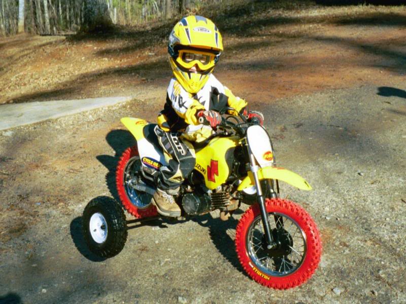 FYI: I had my 4th son, Isaiah, riding that JR50 withOUT the training wheels before his 3rd b-day :O We love our dirtbikes ;)