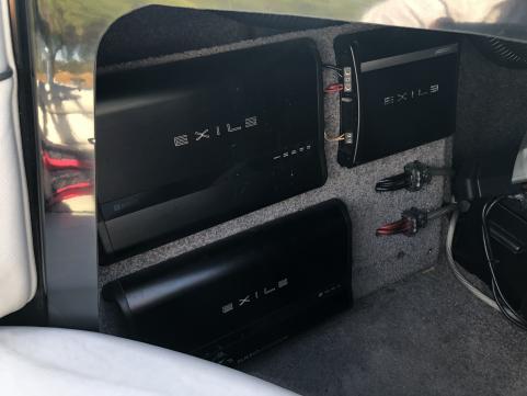 4 Exile XM9s on a harpoon. Full Exile cabin speakers on an Exile amp plus a sub (not Exile). Exile ZLD with Bluetooth.