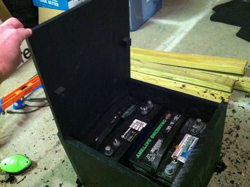 - Build dual battery box (Starboard) & Relocate batteries to where port sub current resides (directly behind bow seat back)