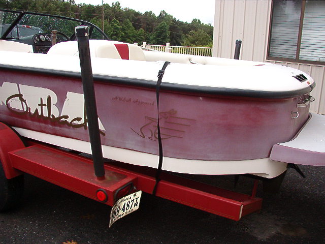 I picked up this '98 Outback from close to Jacksonville, FL almost two months ago. It was obvious it was never taken care of, never covered, and never waxed, but it only had 320 hrs on the clock. I knew it needed a little work, all new interior, and some gel coat work but didn't know it would need a Transom repair. There were gel coat cracks all around the swim platform mounting brackets and I could actually pick up on the platform and watch the transom flex around the brackets. I could also see it had been messed with before because there was blue rtv around the bolts and brackets.