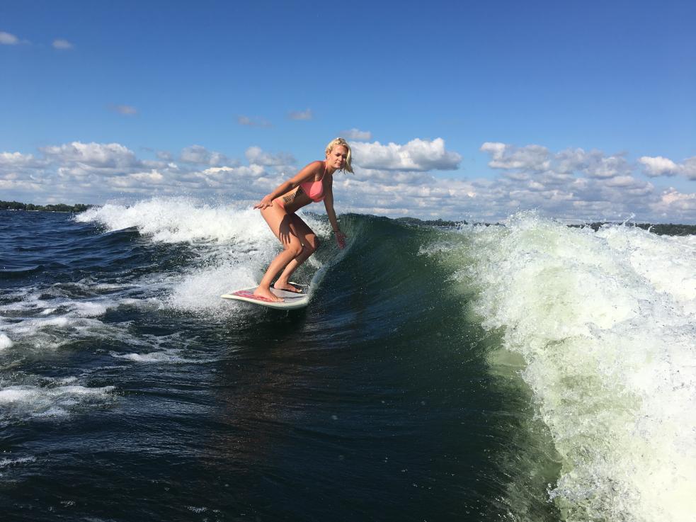 I've found that with this setup, I can get pretty good wave size and push on the port surf side, but the starboard side only gives sufficient push when you're surfing super close to the boat. If you get anymore than 6 feet behind the boat, it loses all push and you fall out the back.