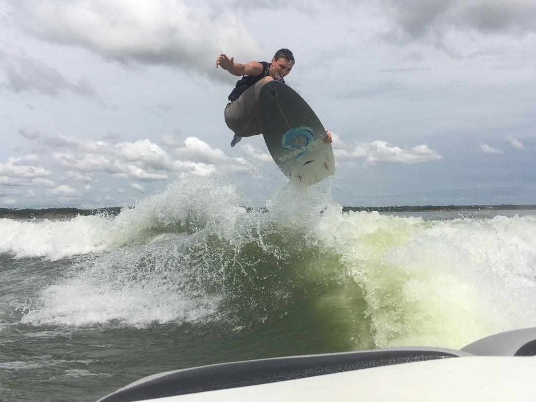 Absolutely 0 wakeboarding due to awful water conditions. We did some surfing but it mostly partying lol.