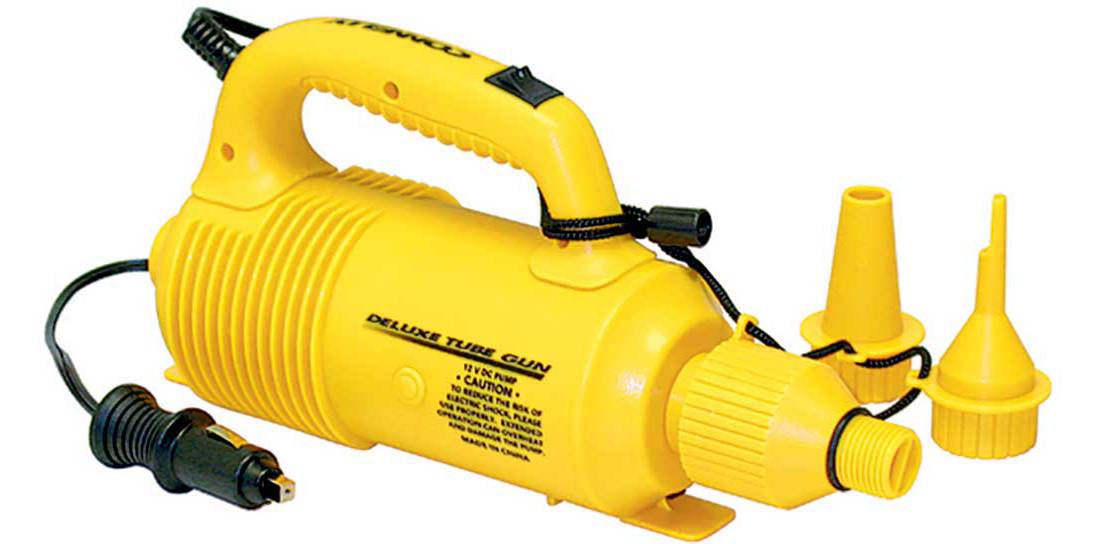 We use this one for tubes and an iSUP. Pumps up the tubes fast and you can set the desired psi and it will shut off automatically. Also has a deflate connection so you don’t have to lay on the tube to get all the air out. Plugs in to the 12v outlet.