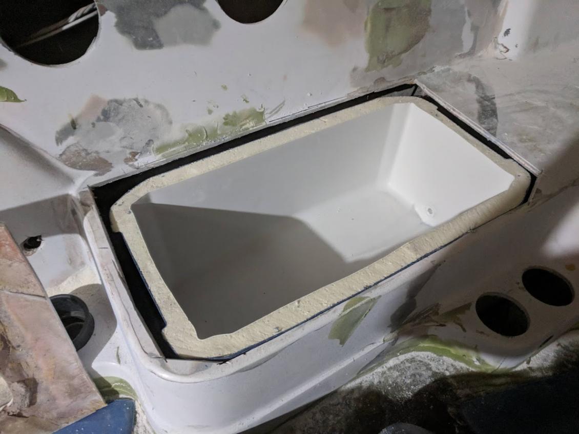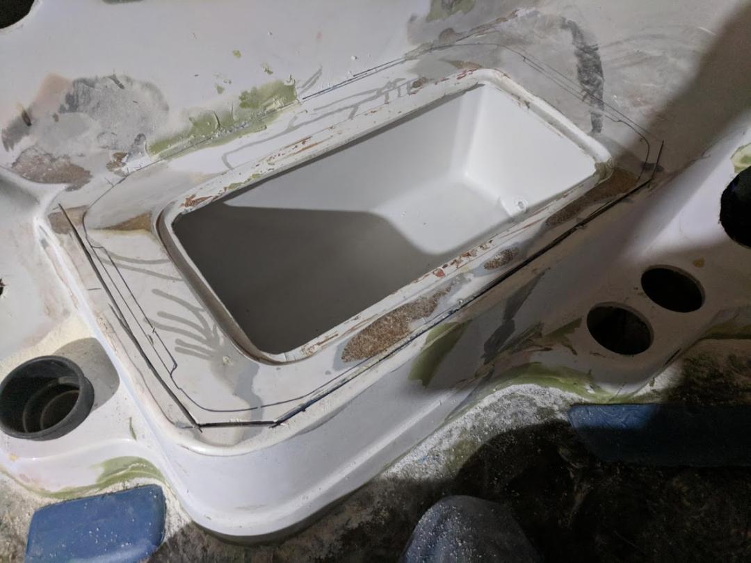 and another cooler under the bow cushion, both could be easily pulled out and shoved back