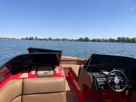 A couple quick shots…. One pulling out of the dealer for a test of the new ballast set up, and one out on the lake during…. The new 5% tint with UV totally helps the ‘old’ style dash design from melting the IPhone on the charge pad!!