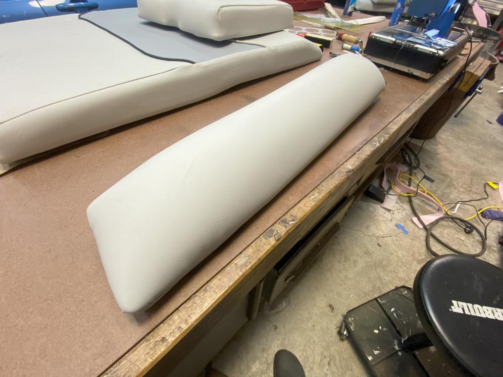I'll post a couple pictures. I'm applying a foam backer to the seated areas so the edges are not tucking as clean as the original but they are all hidden by other panels. I'm working on the center sundeck/engine cover right now. I have about 10 hours into it alone. Working on the notch for the ski pole now.